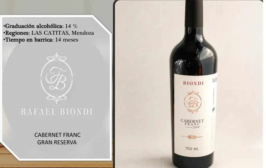Disfruta de la elegancia y sofisticación en cada sorbo con la botella de Rafael Biondi Cabernet Franc Gran Reserva. Este exquisito vino te transportará a los viñedos de Mendoza con sus notas frutales y su suave final. Ideal para acompañar tus momentos especiales con un toque de distinción.