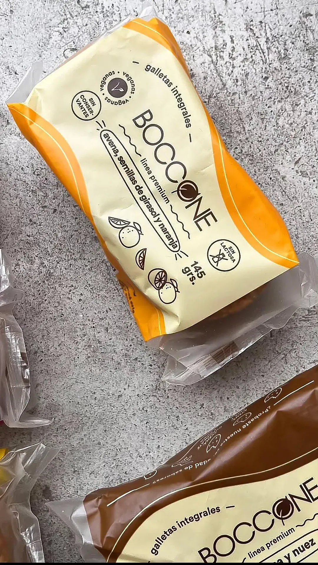 Deliciosas galletas de avena, girasol y naranja que te brindarán un sabor único y nutritivo. Ideales para disfrutar en cualquier momento del día. ¡Prueba las Boccone Cookies y deleita tu paladar con su exquisito sabor!